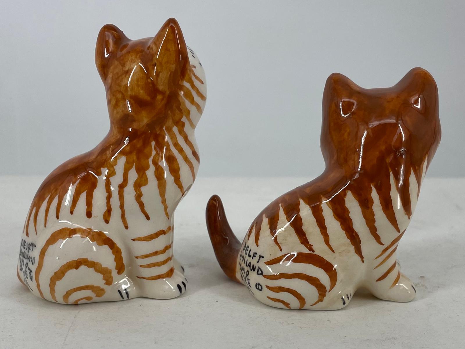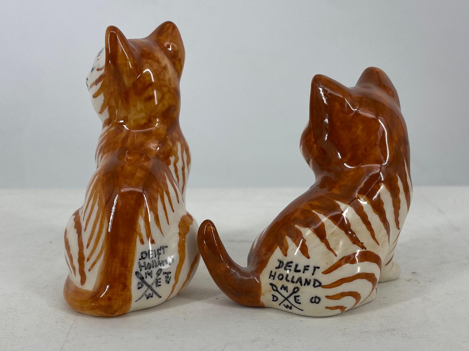 two ceramic kittens in warm red striped colour. This charming pair features vibrant red striping, each piece individually crafted and handpainted with care. Perfect for collectors who appreciate artisanal details, these sitting cats make delightful decorative accents for shelves, windowsills, or desks. Their playful poses and rich glazing capture the spirit of traditional Dutch ceramics. A thoughtful gift for cat lovers and a wonderful way to add personality to your home. Part of the broad ceramic animals collection locally manufactured at the delftpottery of Dutchceramics in Gouderak.