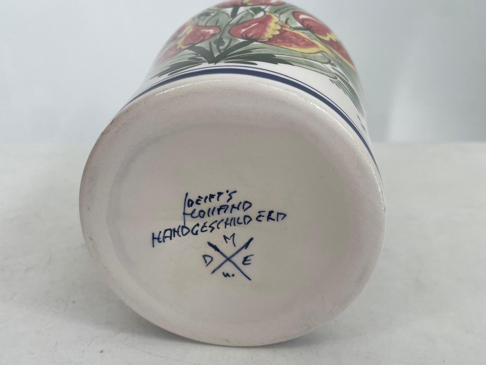 This charming stonebottle brings a splash of Dutch tradition to your spirits collection. Hand-painted with vibrant red tulips dancing across the surface, it's a delightful fusion of classic Delft aesthetics and cheerful botanical flair. Perfect for gin lovers who appreciate artisanal craftsmanship and a touch of whimsy. Each bottle is uniquely painted, making yours a one-of-a-kind conversation starter for your home bar or kitchen shelf. Made in Hollans by the Dutchceramics delftfactory in Gouda.